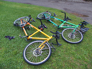 It was another wet night -- Meg and I scrambled out of the tent at 2 AM to unplug our electronics and batten down the hatches. Fortunately, once a snooze, Dex and Kylie tend to sleep like the dead, even with the drumming of heavy drops on the rain fly. Although we packed up the tent wet this morning, we once again lucked out for the ride with grey but dry skies.